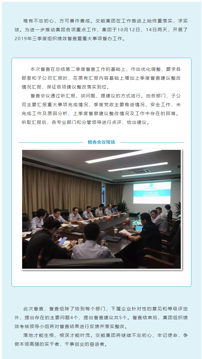 找差距,抓落实|交能集团开展三季度组织绩效督查工作