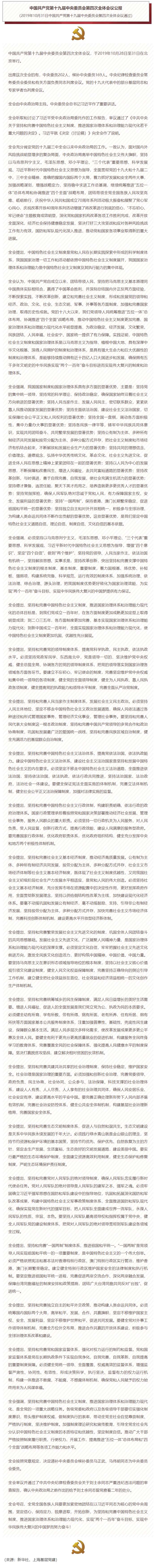 【聚焦关注】中国共产党第十九届中央委员会第四次全体会议公报