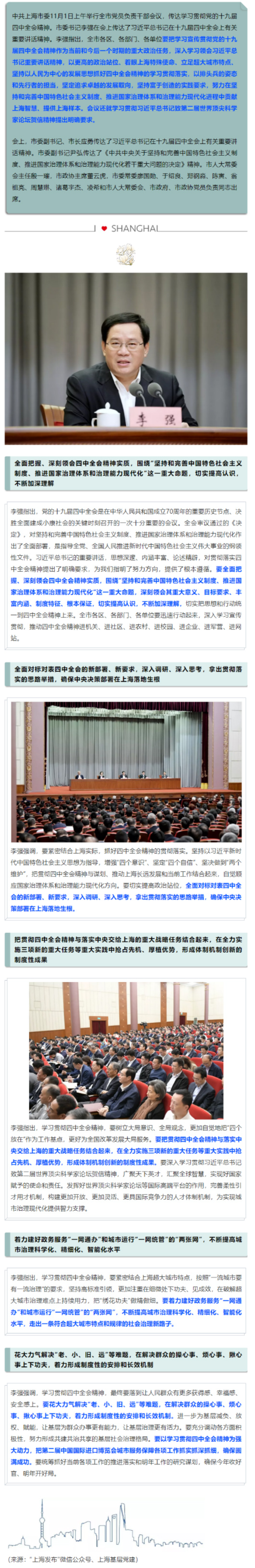 【聚焦关注】上海传达学习贯彻十九届四中全会精神,李强书记强调了啥