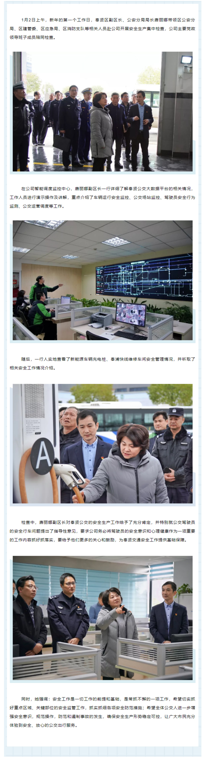 唐丽娜副区长莅临奉贤公交开展安全生产检查