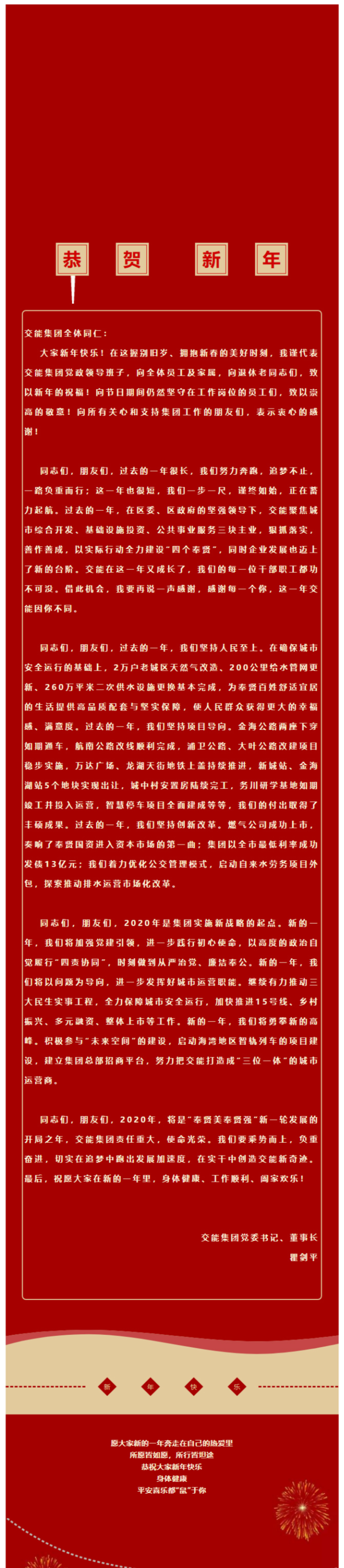交能集团党委书记、董事长瞿剑平祝大家新春快乐!