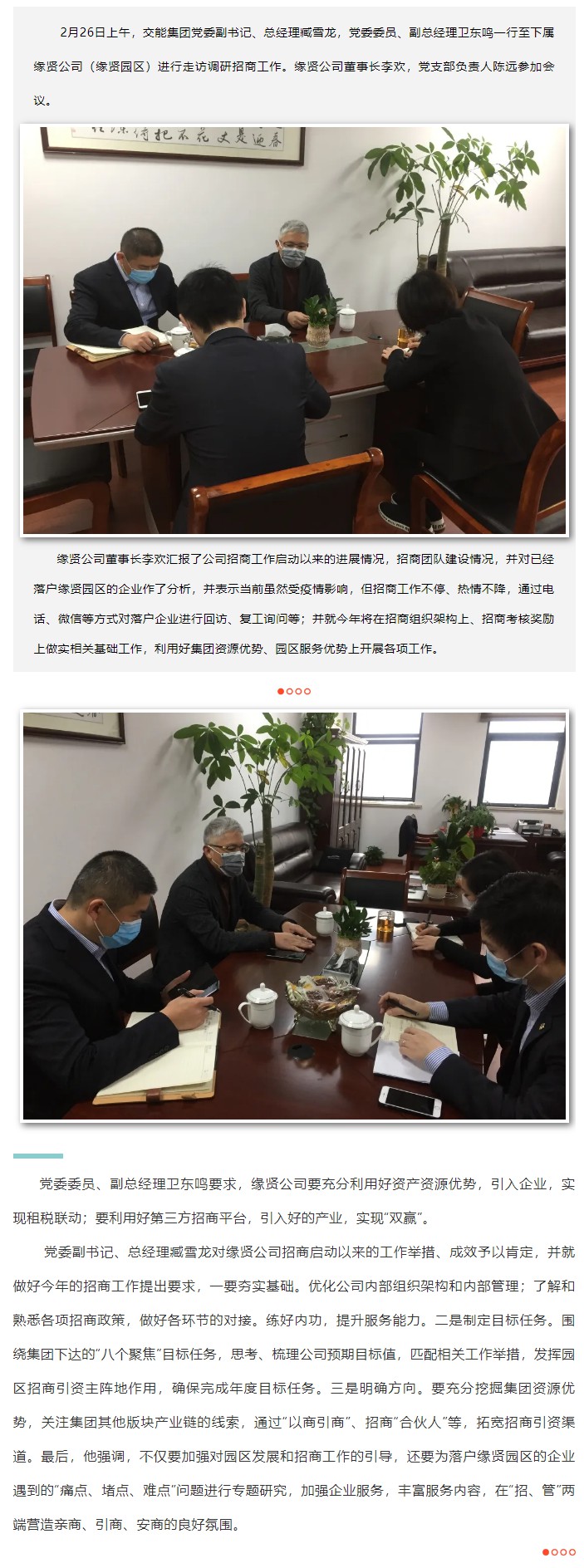 坚定信心 加快发展:交能集团领导走访调研招商工作