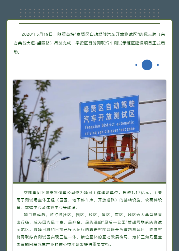 奉贤区智能网联汽车测试示范区建设项目正式启动