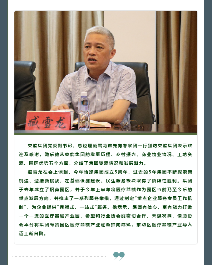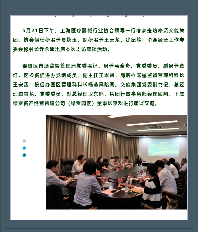 上海医疗器械行业协会领导一行考察走访奉贤交能集团