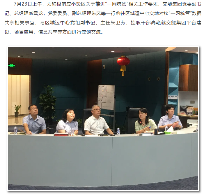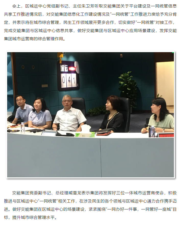 交能集团赴区城运中心推进“一网统管”相关工作