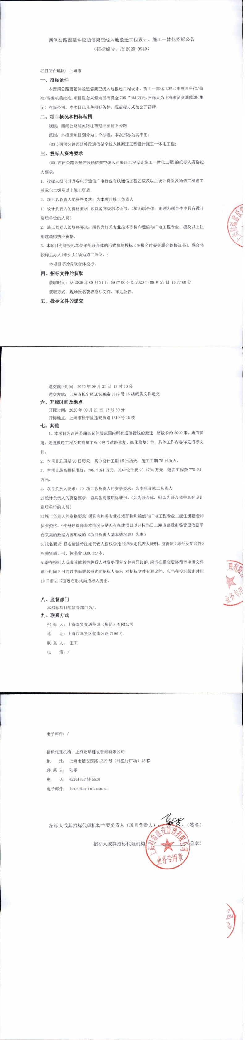 西闸公路西延伸段通信架空线入地搬迁工程设计、施工一体化招标公告