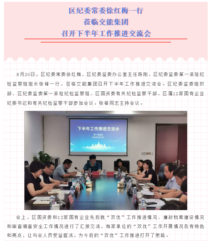 区纪委常委徐红梅一行莅临交能集团召开下半年工作推进交流会
