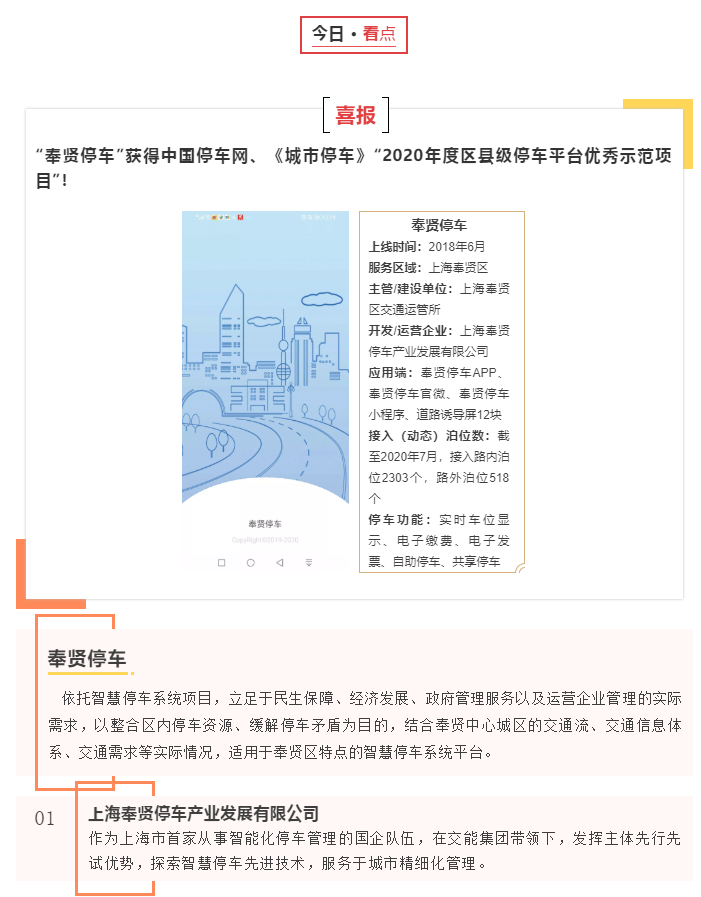 【喜报】“奉贤停车”获得中国停车网、《城市停车》“2020年度区县级停车平台优秀示范项目”!